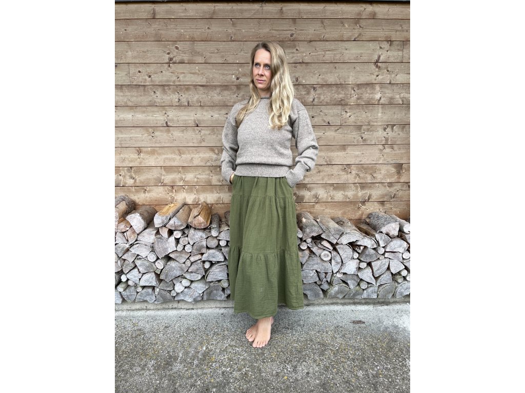 Hodí se k šatům, legínám i džínám. Odstín bílá káva. Vlna je přirozeně pigmentovaná a není barvená.