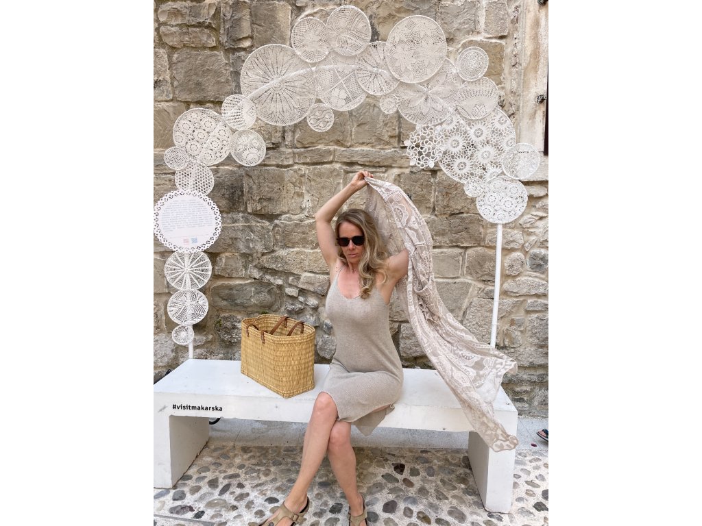 Pletenina je jemně průhledná.