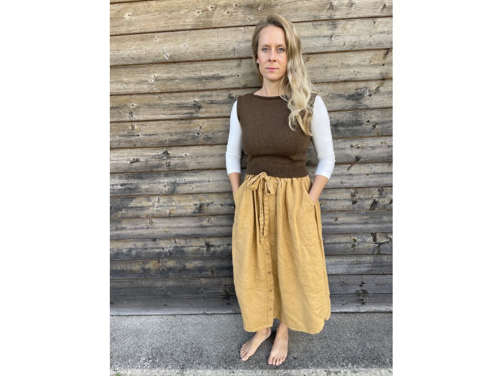 Výstřih je lodičkový. Velmi variabilní kousek. Můžete se v něm zachumlat doma a nebo vyrazit na kávu. V kombinaci se sukní poslouží stejně dobře.